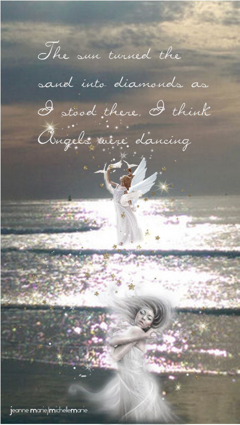 The sun turned the sand into diamonds as I stood there, I think Angels were dancing Beautiful art from my ocean picture by Michelle Marie… Tell Me About It photo by Jeanne Marie/ art by MichelleMarie View original postShare this: Click to print (Opens in new window) Print Click to share on Facebook (Opens in new window) Facebook Click to share on X (Opens in new window) X Click to email a link to a friend (Opens in new window) Email More Click to share on Reddit (Opens in new window) Reddit Click to share on Pinterest (Opens in new window) Pinterest Click to share on Tumblr (Opens in new window) Tumblr Click to share on LinkedIn (Opens in new window) LinkedIn Click to share on Pocket (Opens in new window) Pocket Like Loading... Related