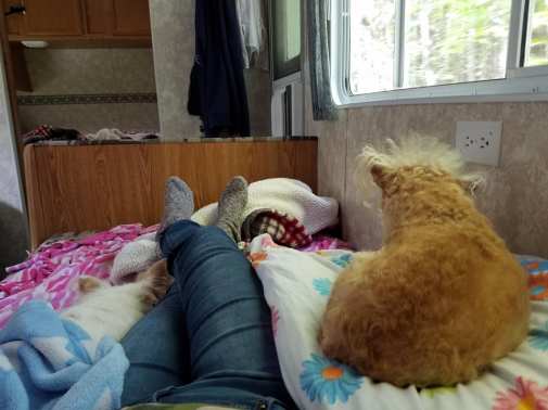 Now I’ll see how good I really packed it. We drove away with the storage (under the bunk bed) door open. You know, the place I stuck my writing files and picture boxes so they’d be safe. First, I panicked.
