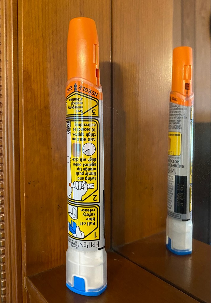 I know most of us EpiPens end up in the trashcan after our medicine is gone and I’m really proud to say that I’m standing on a shelf with all her pretty treasures.