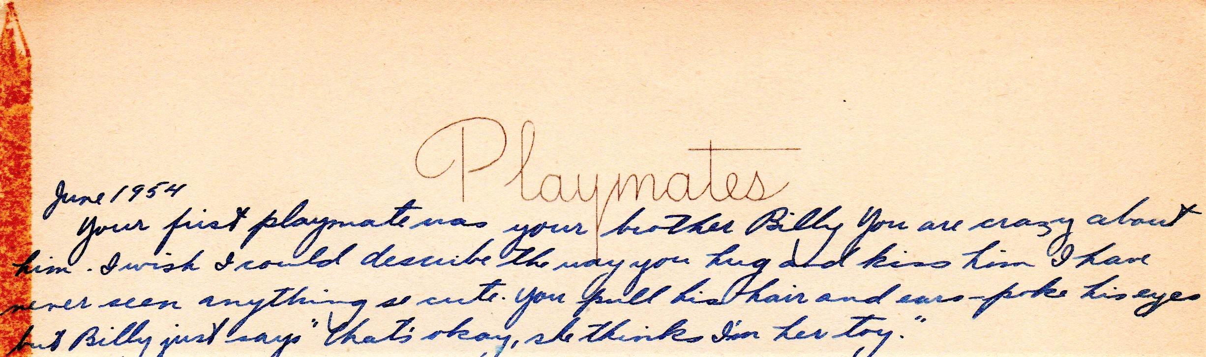 Mom wrote in my baby book that when I was a year old, I followed you everywhere, pulling your hair and teasing you, wanting you to play with me. And you told her that it was okay.