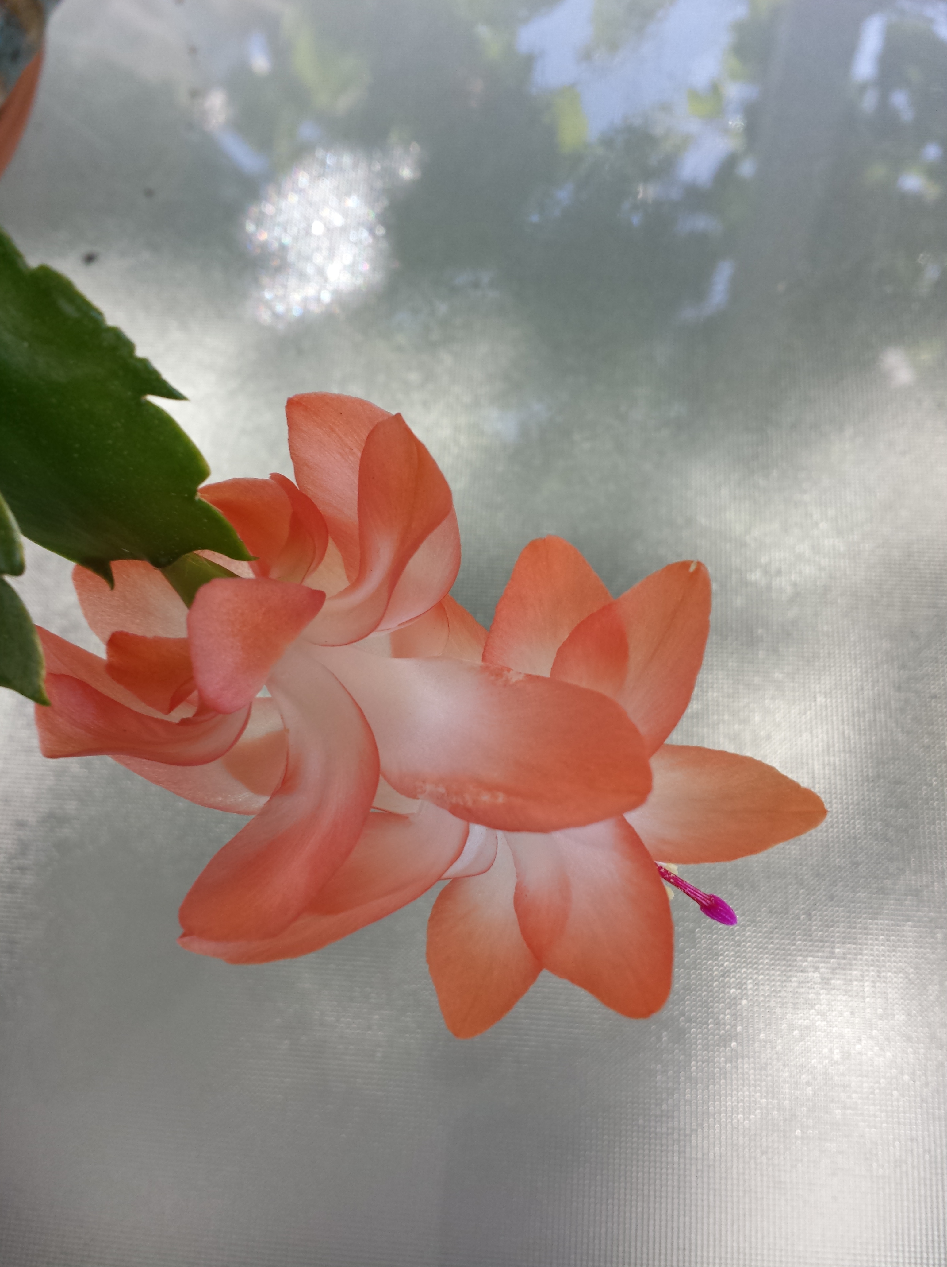 I added a piece of peach cactus in thin areas and it bloomed in July. Really. If anybody has a Christmas cactus that has bloomed in July, even in Florida please let me know!