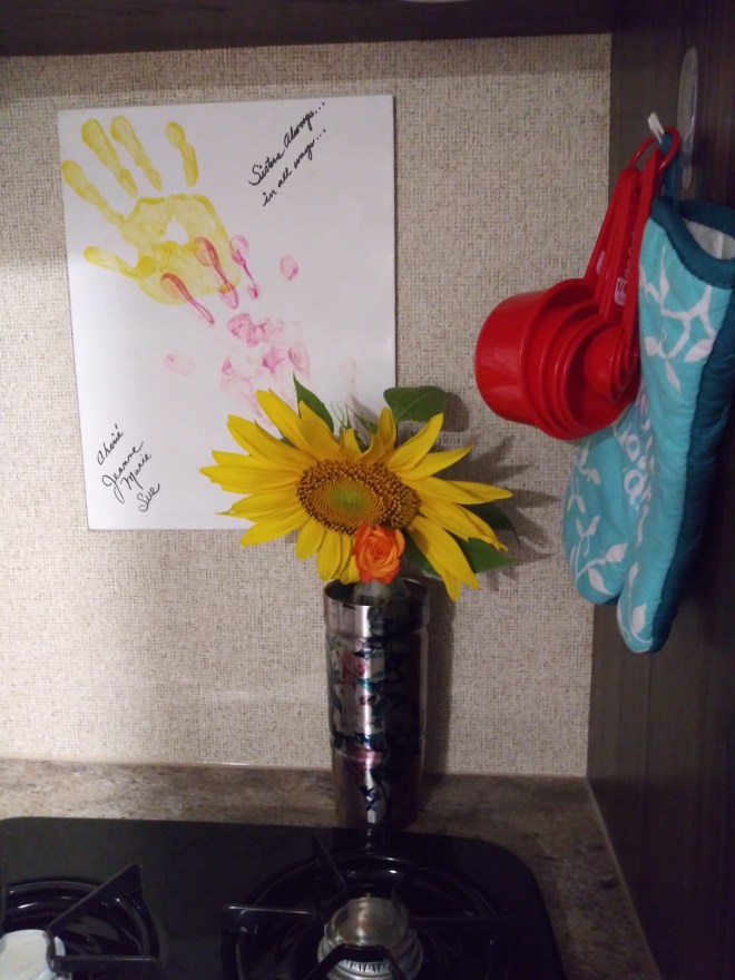 I’m also thankful that I wasn’t sleeping or on the road when the microwave flamed, because it has been smelling like burnt plastic all along, and I thought it was burning off the new smell. LOL