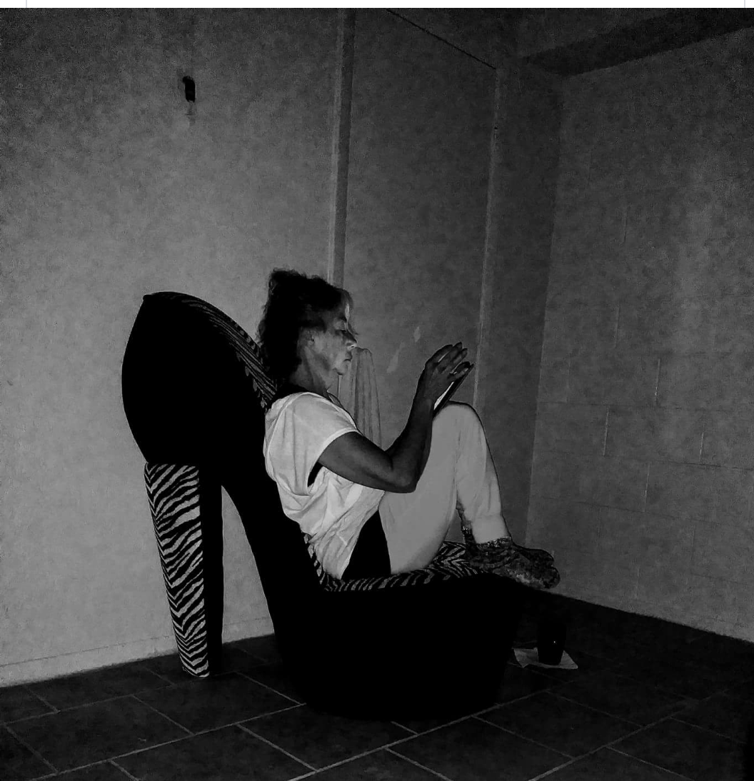 She walks back to her cozy little kitchen and plops down in her favorite chair, the rocking chair Mama had bought her when her first baby was born.